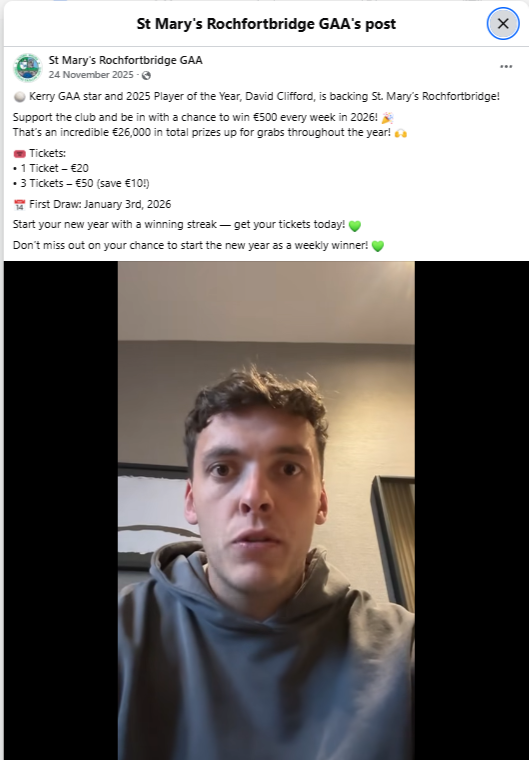 A major strength of this campaign was the quality of content provided by the club. St Mary’s secured support from high-profile GAA figures including Kerry All-Star David Clifford and Donegal legend Michael Murphy, who recorded short video messages encouraging people to support the draw.